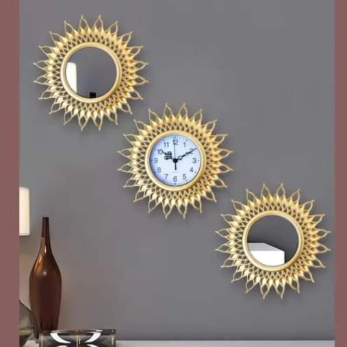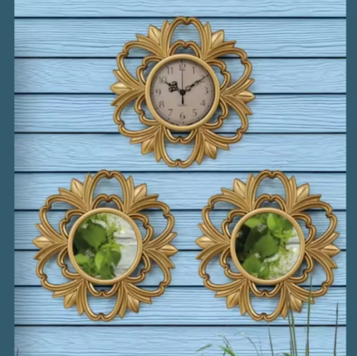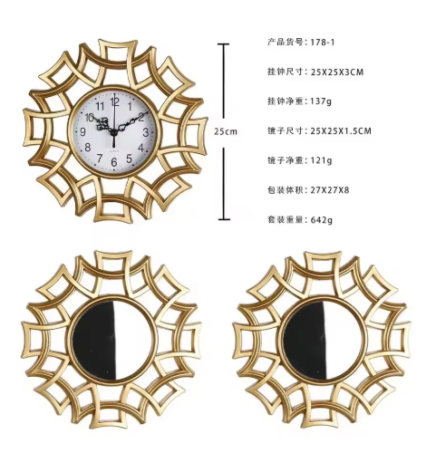 3 Pcs European Elegant Luxury Hotel Bathroom Decorative Clocks Antique Gold Frame Round Creative Vintage Wall Clock