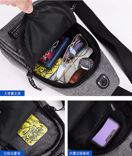 Men’s Bag Solid Color Men’s Chest Bag Outdoor Casual Fashionable Small Satchel Canvas Handbag Zipper Messenger Fashion Bags